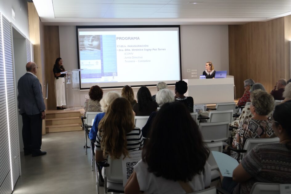 El acto de apertura ha estado a cargo de la tesorera del ICOMV, la Dra. Paz quien ha querido subrayar la dimensión humana de esta práctica, recordando que “la mutilación genital femenina no es solo un problema de salud, es una herida social y humana que exige nuestra atención, nuestra escucha y nuestro respeto”. También ha agradecido la implicación de los y las profesionales asistentes y ha reconocido la labor de la Comisión organizadora: “Gracias por mantener viva la brújula ética de nuestra profesión”.